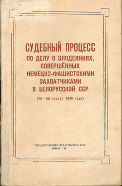 На оккупированной территории Беларуси в 1941-1944 гг. гитлеровцы и их пособники совершали страшные преступления против мирных жителей и советских военнопленных. Виновных необходимо было призвать к ответу и сурово наказать. Юридическим основанием для наказания стал Указ Президиума Верховного Совета СССР от 19 апреля 1943 г., предусматривавший уголовную ответственность для военных преступников и их пособников в виде смертной казни через повешение либо каторжных работ сроком от 15 до 20 лет. Выявление фактов, совершённых немецко-фашистскими захватчиками преступлений проводила Чрезвычайная государственная комиссия. Первые судебные процессы состоялись уже в 1943 г. в освобождённых Красной Армией городах Краснодаре, Краснодоне, Харькове. В августе 1945 г. был создан Международный военный трибунал, а главные военные преступники – руководители нацистской Германии – предстали перед судом в ходе Нюрнбергского процесса. Частью этого международного суда стал проходивший 15–29 января 1946 г. в Минске процесс по делу о злодеяниях нацистов на территории Белорусской ССР в годы Великой Отечественной войны.