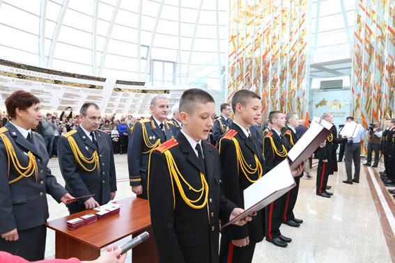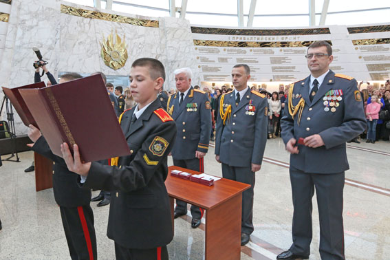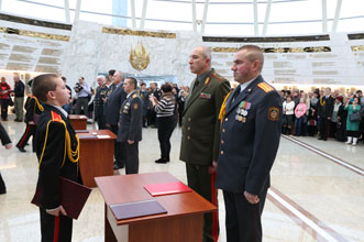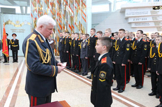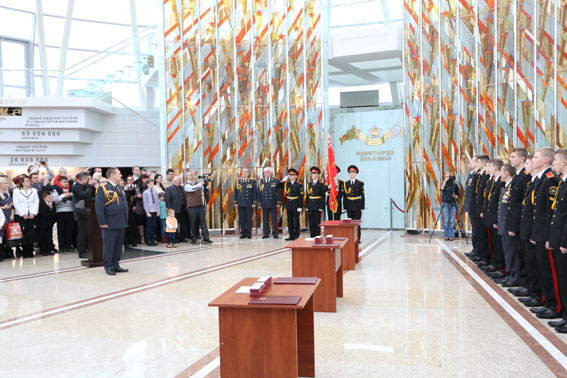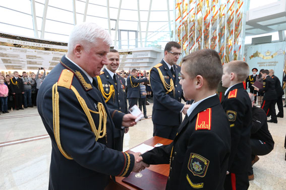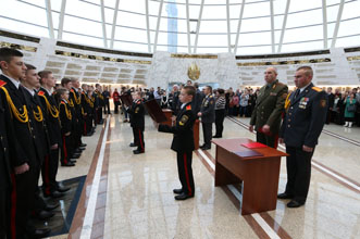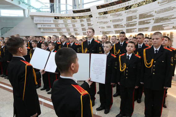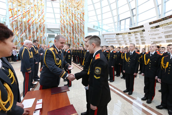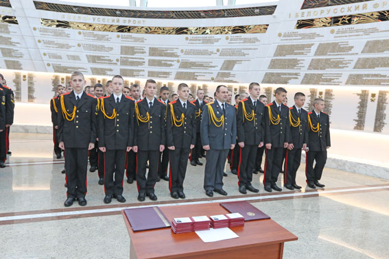 23 декабря 2015 г. в Зале Победы Белорусского государственного музея истории Великой Отечественной войны состоялась церемония принесения Торжественного обещания учащимися учреждения образования «Специализированный лицей Министерства внутренних дел Республики Беларусь» – правопреемниками Минского городского кадетского училища № 1 имени М.В. Фрунзе. В этот торжественный день учащиеся лицея перед лицом руководителей ГУВД г. Минска, почетных гостей, родственников и своих товарищей дали клятву быть честными, верными и достойными звания кадета.
