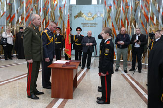 От имени первокурсников лицея, принесших Торжественное обещание, учащийся 7 класса Иван Марченко заверил собравшихся в том, что достойно пронесут по жизни высокое звание кадета.