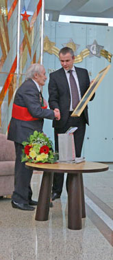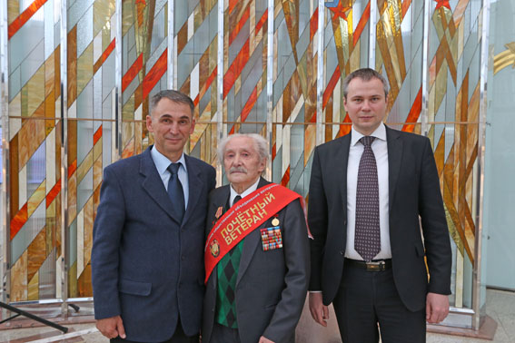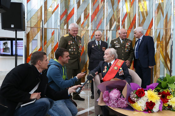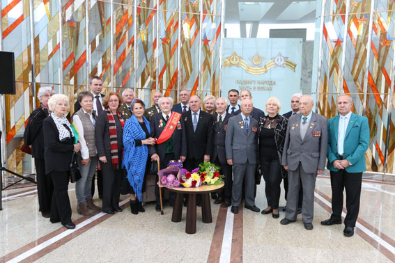 Председатель Совета ветеранов ВВС Вооруженных Сил Республики Беларусь, военный летчик-снайпер полковник в отставке Михаил Николаевич Клубничкин, поздравив ветерана, подарил ему книгу об авиации и памятный сувенир. Со словами благодарности и стихами в честь юбиляра выступили также руководители Советской районной организации ветеранов г. Минска.