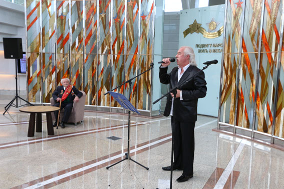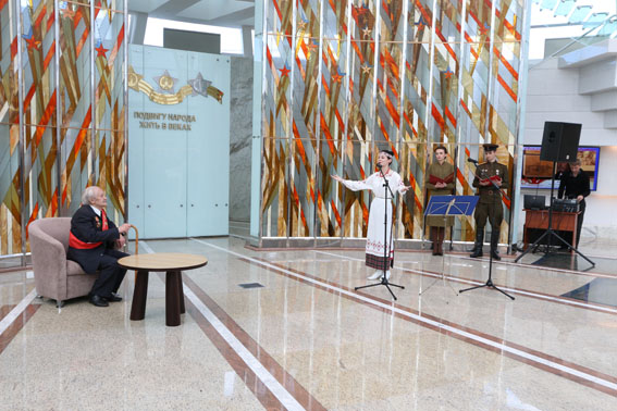 Подарком ветерану стала белорусская народная песня в исполнении научного сотрудника музея Елены Дворецкой, выступившая в национальной одежде.