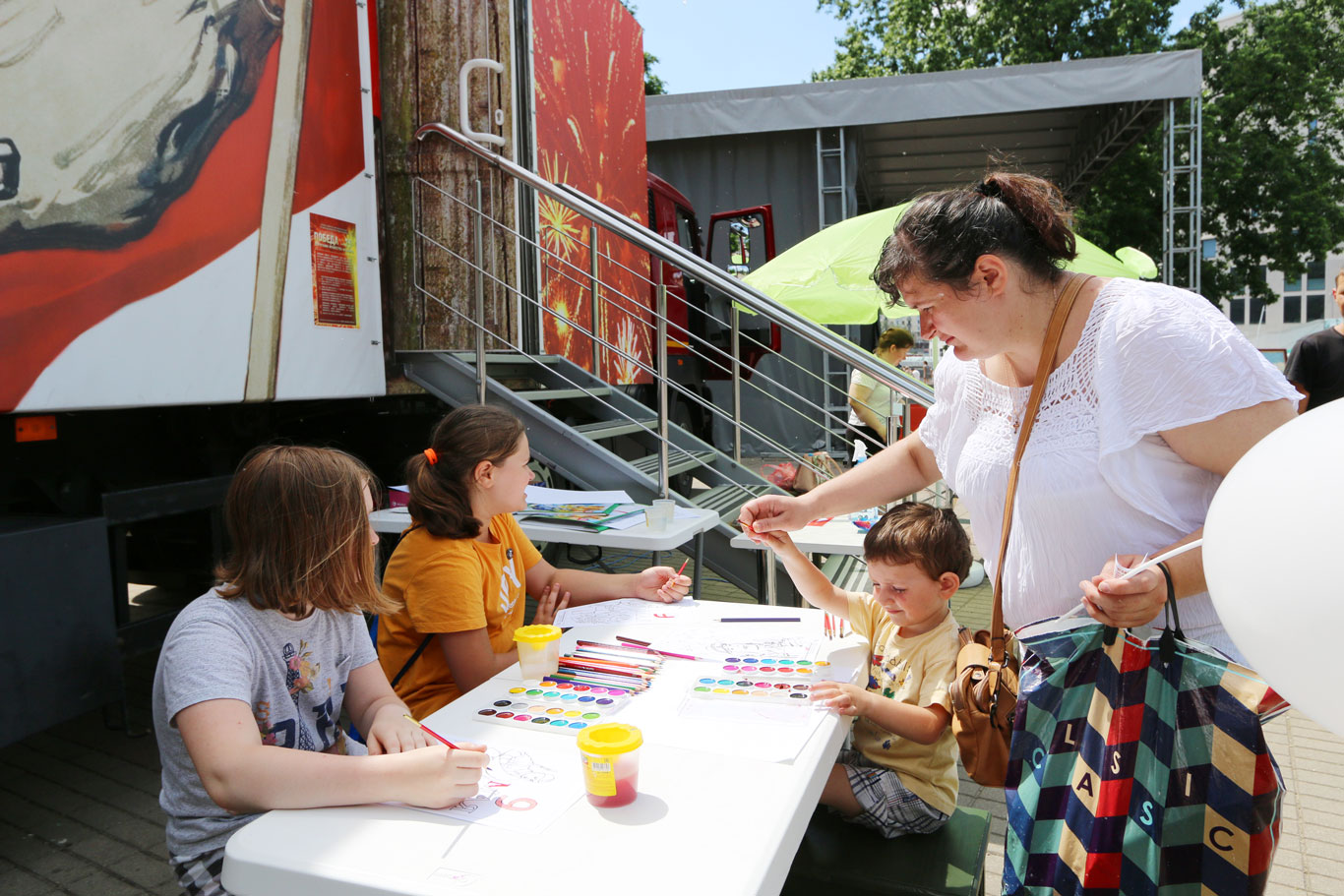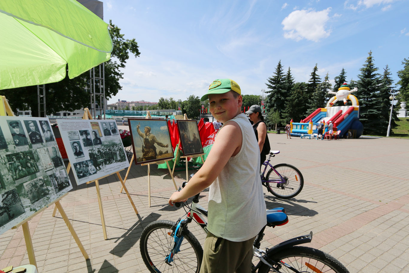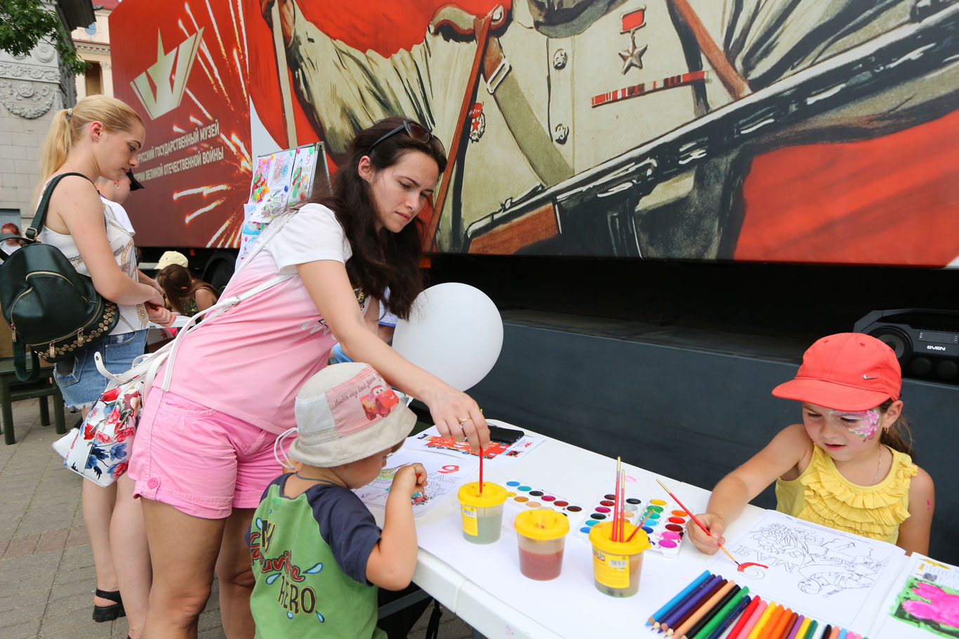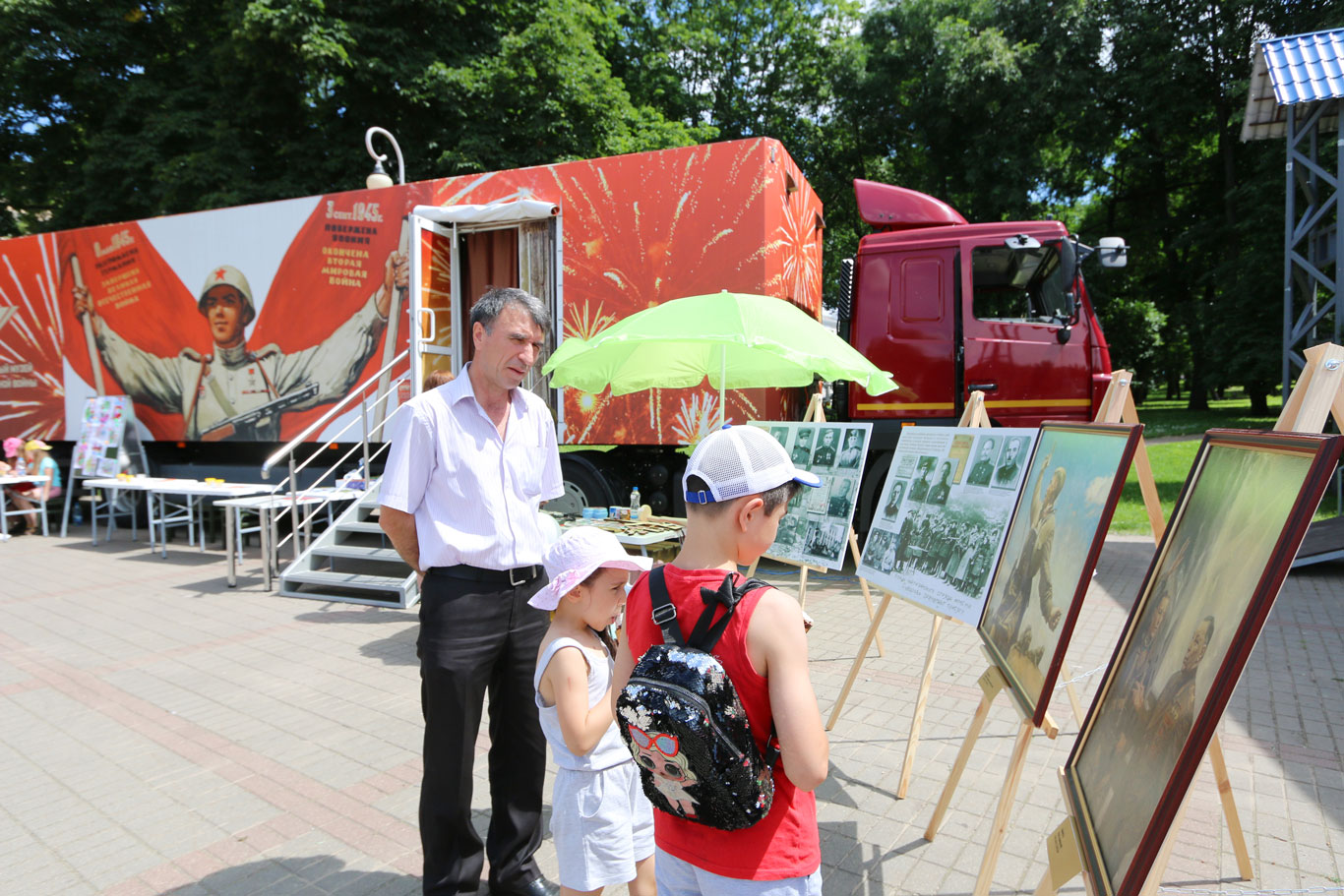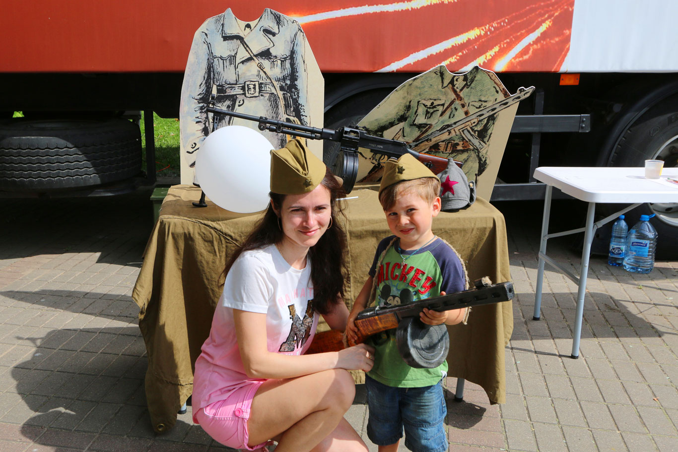 С утра и до самого вечера сотрудники музея гостеприимно встречали посетителей на площадке у передвижной экспозиции. Здесь юные минчане и их родители могли принять участие в художественном мастер-классе «Рисуем Победу вместе», сделать памятные снимки в музейной фотозоне, а также приобрести оригинальные сувениры на военную тематику. И главное – посетить экспозицию «Победа 75: дорогами мужества и славы», узнать об истории славных городов Беларуси, отличившихся мужеством и стойкостью в годы Великой Отечественной войны, об отважных героях, проложивших путь к Победе.