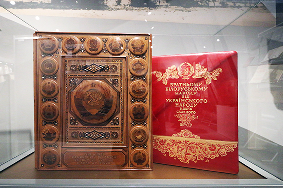 На временной экспозиции впервые будут представлены музейные предметы, положившие начало формированию в музее коллекции декоративно-прикладного искусства. В январе 1949г. в Большом театре оперы и балета, состоялась выставка юбилейных подарков, преподнесённых правительству Белорусской ССР делегациями союзных республик бывшего Советского Союза, часть из которых была передана в музей, в том числе: РСФСР, Армянской ССР, Азербайджанской ССР, Литовской ССР, Латвийской ССР, Узбекской ССР, Украинская ССР по случаю празднования 30-летия образования БССР. Среди них поздравительные адреса, представляющие собой настоящее произведение искусства.