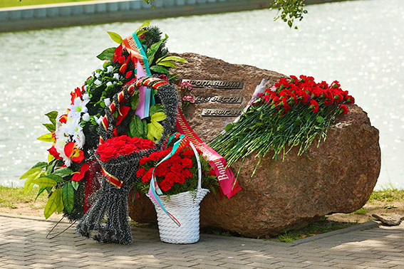 В 11.00 военнослужащие роты почетного караула Минской военной комендатуры возложили венок от командующего силами специальных операций Вооруженных Сил, а члены семей военнослужащих, погибших в Афганистане, войны-интернационалисты, представители общественных объединений возложили цветы к камню с бронзовым образом Божьей Матери.