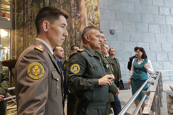 Руководители органов управления топографических служб вооруженных сил государств – участников СНГ ознакомились также с экспозицией зала «Наследники Великой Победы». Обзорную экскурсию с офицерами провел заведующий сектором истории послевоенных вооруженных конфликтов, участник боевых действий в Афганистане полковник запаса Михаил Геннадьевич Поваляев.