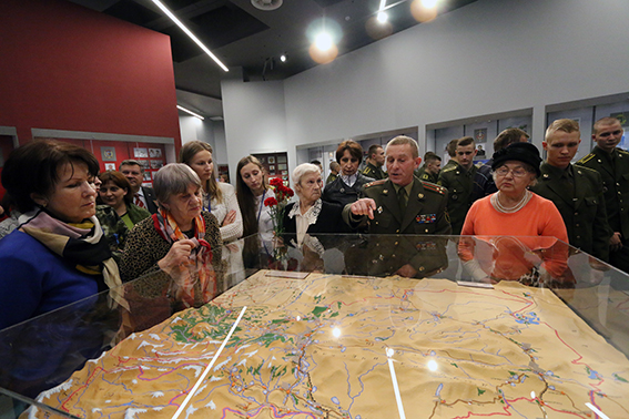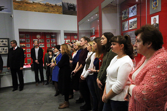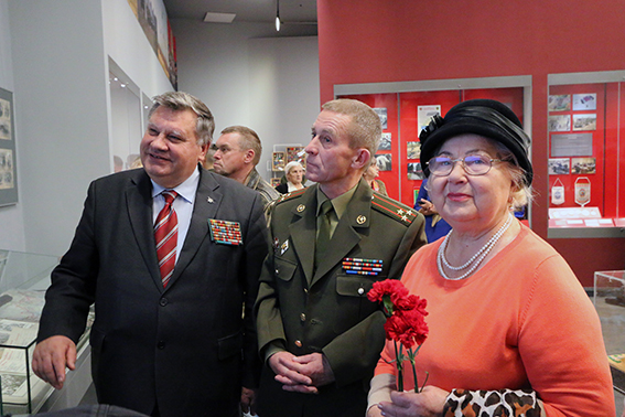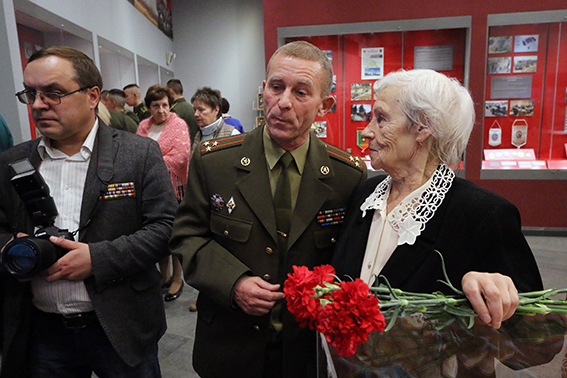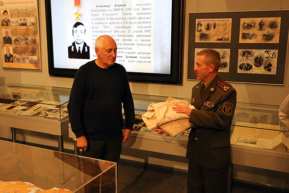 В открытии экспозиции приняли участие воины-интернационалисты из числа выпускников политических училищ – офицеры-политработники, воевавшие в Афганистане в составе мотострелковых, воздушно-десантных, десантно-штурмовых, разведывательных подразделений и частей, отдельных отрядов спецназа ГРУ, мотоманевренных групп Пограничных войск: Владимир Шоков, Игорь Шелудков, Борис Лийц, Олег Трибелустов, Виталий Гуртовой, Владимир Никулин, сотрудники музея. Курсанты Военной академии – будущие офицеры идеологических структур Вооруженных Сил вручили цветы Талине Александровне Тропашко – маме мужественного офицера-разведчика Юрия Тропашко, выпускника Минского военно-политического училища, погибшего в Афганистане в 1986 году, а так же Вере Фёдоровне Кобликовой – маме рядового Николая Кобликова, погибшего в 1985 году. Ветеран специальной разведки, участник боевых действий в Афганистане подполковник в отставке Борис Лийц передал в дар музею самую дорогую реликвию – комплект обмундирования военнослужащего спецназа – «песчанку», прошедшую через Афганистан.