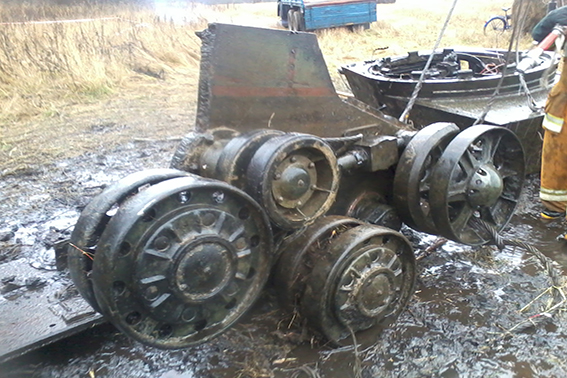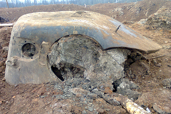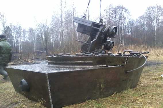 Проведение совместной военно-патриотической акции сотрудниками историко-культурного комплекса «Линия Сталина» и Белорусского государственного музея истории Великой Отечественной войны. Башня и часть корпуса тяжелого советского танка КВ-1. Сенненский район.