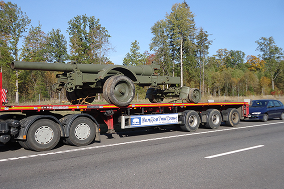 Немецкая 211-мм тяжелая нарезная мортира образца 1918 г. (1938 г. выпуска) на ствольной тележке. Передана военно-патриотическим клубом «Пошук». Шкловский район.