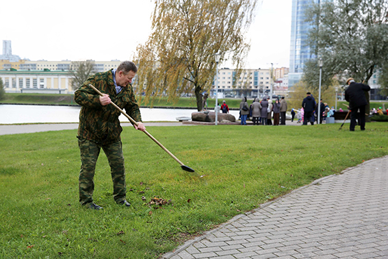 В субботнике приняли участие члены Минской городской организации ветеранов войны в Афганистане «Память» ОО «БСВВА» под руководством председателя Совета организации полковника Владимира Шокова, общественного объединения «Белорусский союз ветеранов органов пограничной службы» под руководством заместителя председателя Республиканского совета объединения полковника Владимира Никулина, сотрудники музея во главе с заведующим филиалом «Памятник воинам-интернационалистам» Виктором Иванчиковым, работники унитарного предприятия «Зеленстрой Центрального района г. Минска».
