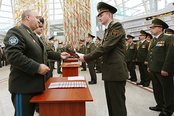 После ответа военнослужащих на приветствие Министра обороны Республики Беларусь, прозвучала команда начальника Военной академии: «К вручению дипломов приступить!».
