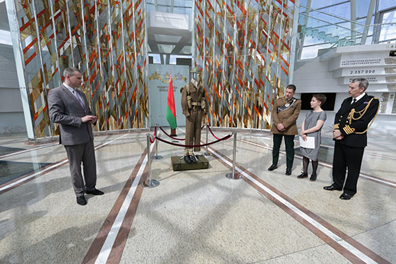 Дмитрий Геннадьевич Шляхтин поблагодарил гостей музея за подарок и вручил подполковнику Полу Уолкли памятный знак «70 лет Белорусскому государственному музею истории Великой Отечественной войны».