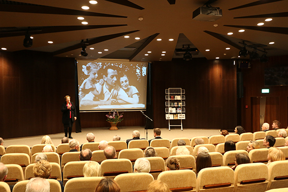 Наталья Петровна Машерова выступает на открытии временной экспозиции.