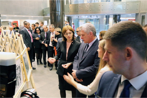 Специально к его нынешнему визиту экспозиционерами и художникам музея совместно с Посольством Республики Куба в Республике Беларусь была подготовлена экспресс-выставка «Фидель Кастро в Беларуси: память и продолжение», с которой с большим интересом ознакомились Мигель Диас-Канель с супругой. Фотоматериалы выставки запечатлели посещение музея, Кургана Славы, Хатыни Фиделем и Раулем Кастро в 1972 и 1976 годах, а также кубинским космонавтом Тамайо Мендесом в 1983 году.