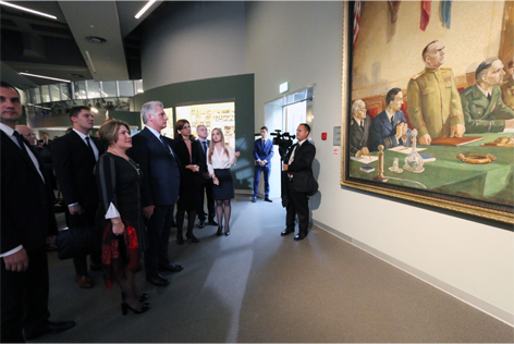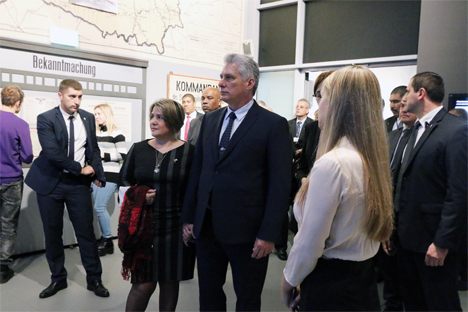 Визит кубинского лидера совпал с праздничными мероприятиями, посвященными 75-летию со дня открытия музея. Высокий гость был у нас не впервые. В мае 2015 г. он посетил музей в составе кубинской делегации, будучи на тот момент первым заместителем председателя Госсовета и Совета Министров Кубы.