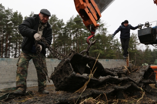 В поселке Золотой Рог Ветковского района Гомельской области были найдены фрагменты советского танка Т-34. В ноябре 1943-го на этих территориях проходила операция по освобождению Гомеля, в которой участвовали и танковые полки. О возможном местонахождении боевой машины поисковикам сообщили местные жители. Предположения подтвердили приборы: показания магнитометра указали на наличие металла на глубине 2-3 метра.