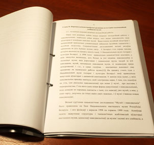 Младший научный сотрудник Татьяна Федоровна Политыко защищала дипломную работу по теме «Современные формы работы с посетителями на примере учреждения "Белорусский государственный музей истории Великой Отечественной войны"» (руководитель – доктор исторических наук, профессор А.А. Гужаловский). В рецензии директор Белорусского государственного музея истории Великой Отечественной войны Дмитрий Геннадьевич Шляхтин отметил, что «в данной дипломной работе умело используются и сочетаются теоретические выкладки и личный практический опыт. Важен тот факт, что результатом проведенных исследований стали проекты музейно-педагогических занятий и конкретные разработки по направлениям музейно-педагогических программ, которые могут быть осуществлены на практике в ближайшее время. При этом автор четко придерживается принципа – избегать в культурно-образовательной работе музея, посвященного теме Великой Отечественной войны, подходов, способных превратить его в место развлечений. Дипломная работа соответствует требованиям, предъявляемым к данному виду научной работы, и представляет собой законченный труд».