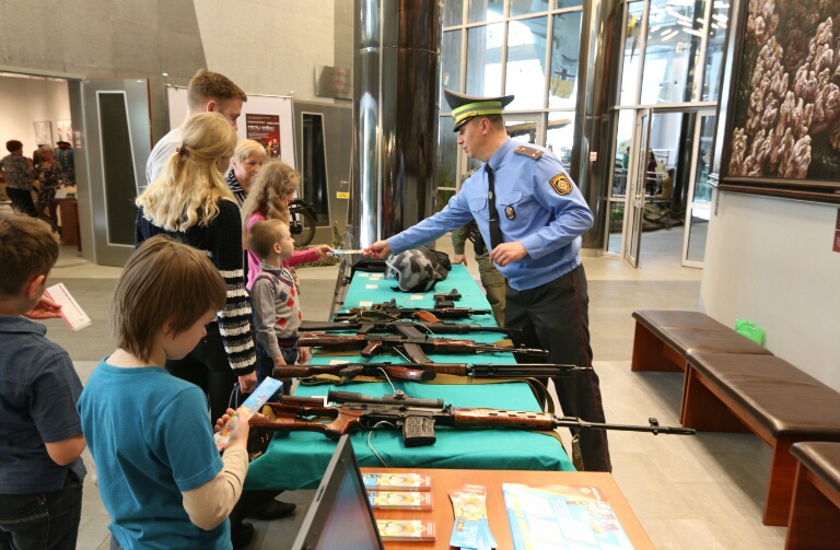 Ознакомление посетителей музея с вооружением ОМОНа ГУВД Мингорисполкома.