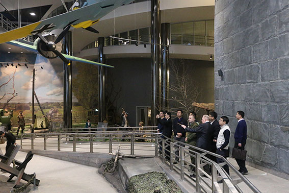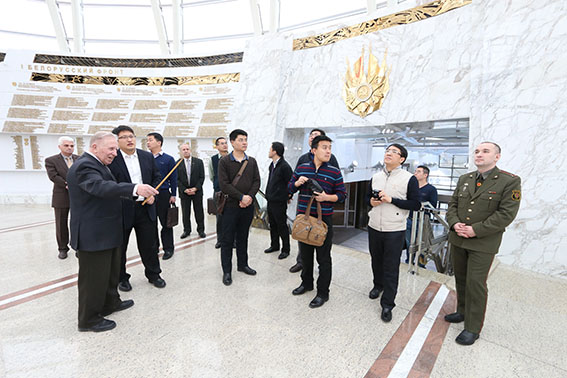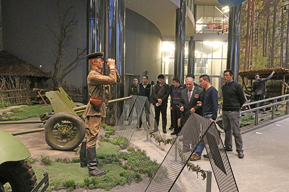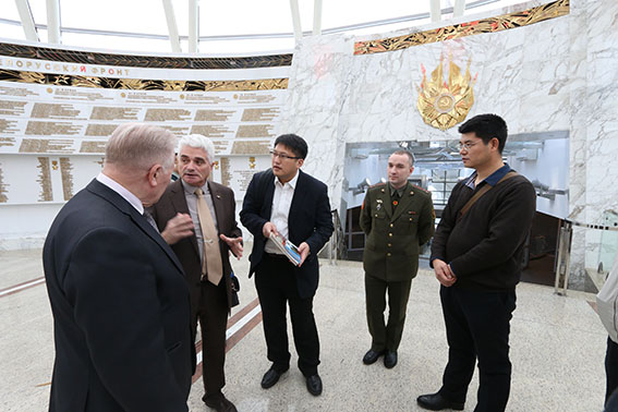 Обзорную экскурсию с членами китайской делегации провел заведующий сектором научно-методической работы, ветеран Вооруженных Сил Республики Беларусь, участник боевых действий в Афганистане полковник в отставке Владимир Поликарпович Фалецкий. В ходе экскурсии китайских гостей заинтересовал раздел экспозиции, посвященный победе над милитаристской Японией, где собраны документы того периода, в том числе фотографии: подписание Акта о безоговорочной капитуляции Японии на борту американского линкора «Миссури» 2 сентября 1945 г. и Акт о капитуляции японских вооруженных сил 9 сентября 1945 г.