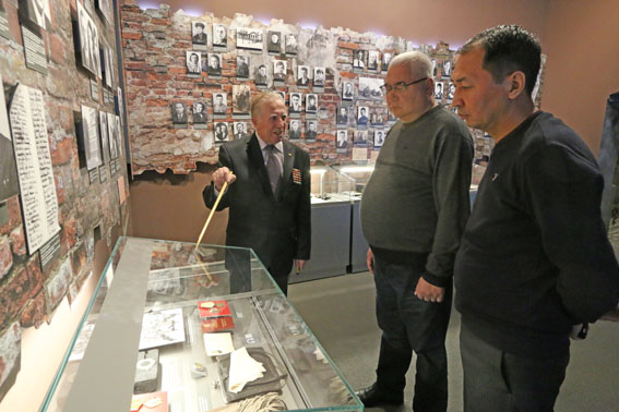 Экскурсию по залам музея с представителями Генерального штаба Вооруженных Сил Кыргызской Республики провел заведующий сектором научно-методической работы, Ветеран Вооруженных Сил СССР и Республики Беларусь, участник боевых действий в Афганистане, полковник в отставке Владимир Поликарпович Фалецкий.