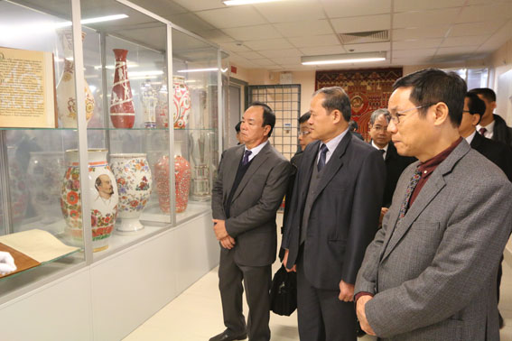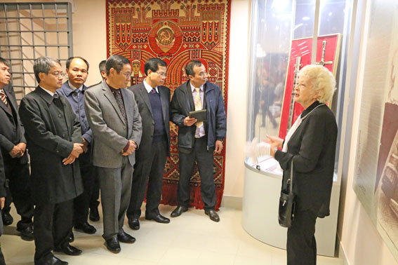 Старший научный сотрудник музея Наталья Иосифовна Филиппович провела небольшую экскурсию по залу, где экспонируются памятные подарки иностранных делегаций, в том числе Вьетнама.