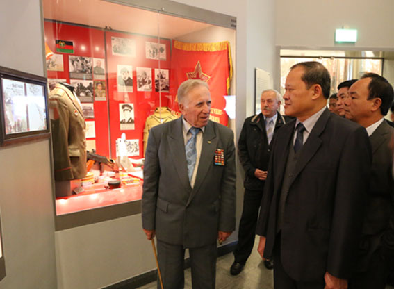 В зале «Наследники Великой Победы» вьетнамские военные с интересом ознакомились с комплексом «Вьетнам. 1964˗1973 гг.», где представлены фотографии боевого расчета зенитно-ракетного комплекса на берегу Тонкинского залива, военной зоны Хатинь, свидетельство о вручении Д.Н. Салашенко медали «Сплочённость для победы над американскими агрессорами», фрагменты шариковой бомбы США, пробковый шлем С.М. Рязанова.