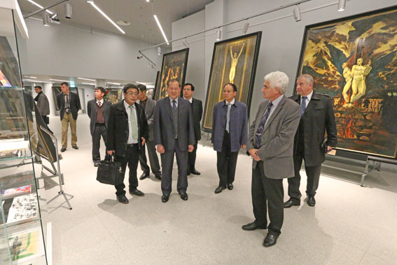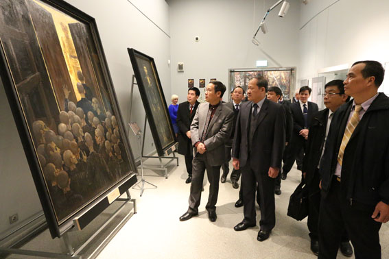 Гости из Вьетнама посетили также выставку работ народного художника Беларуси Михаила Андреевича Савицкого «Цифры на сердце», экспонируемых в выставочном зале музея.