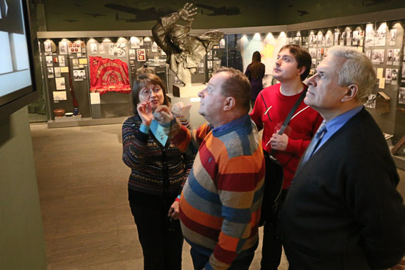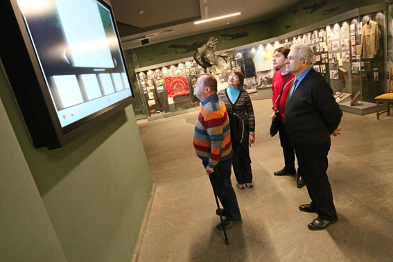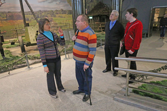 Экскурсию по залам музея с почетным гостем из Австрии провела заведующая отделом истории партизанского движения Наталья Яцкевич. С особым вниманием и волнением гость из Австрии ознакомился с экспозицией зала «Нацистский оккупационный режим в Беларуси. 1941-1944». Здесь поистине уникальными являются предметы из лагеря смерти Тростенец. Бревно из костра, на котором сжигали тела расстрелянных людей, носилки, в которых переносили человеческий пепел из ямы-печи на поля для удобрения, прах последних жертв фашистского террора в Тростенце, личные вещи погибших, полосатая будка часового, предупредительная надпись на деревянной доске, часть лагерной ограды из колючей проволоки – эти предметы, собранные сотрудниками музея в первые дни после освобождения и в последующих экспедициях на это место, не могут не вызывать чувство сострадания к замученным и одновременно ненависти к нацистам. Всего Тростенецкий конвейер смерти забрал жизни 206 500 человек, среди которых были тысячи жителей Австрии.