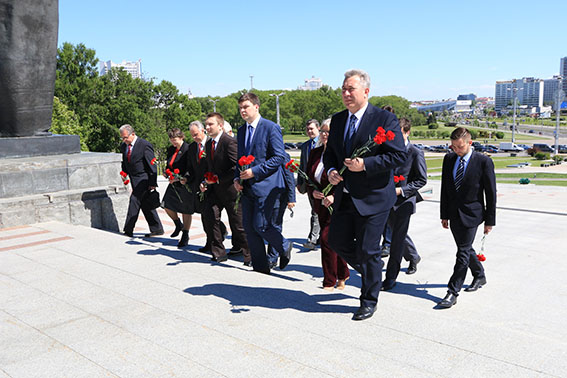 23 мая 2017 г. цветы у обелиска «Минск – город-герой» возложила делегация Министерства иностранных дел Российской Федерации, Дипломатической академии и Московского государственного института международных отношений. Российская делегация находится в нашей стране в рамках мероприятий, приуроченных к 25-летию установления дипломатических отношений между Республикой Беларусь и Российской Федерацией. В ходе визита запланированы рабочие встречи в Министерстве иностранных дел Республики Беларусь, Федерации профсоюзов Беларуси, посещения российскими гостями ряда предприятий, высших учебных заведениях и памятных мест республики.