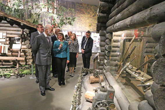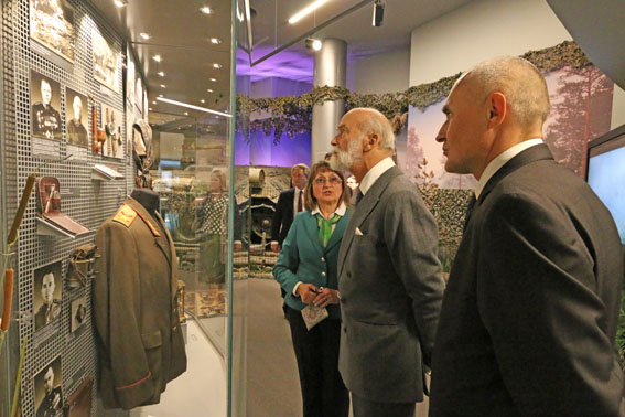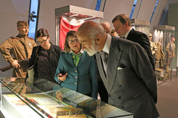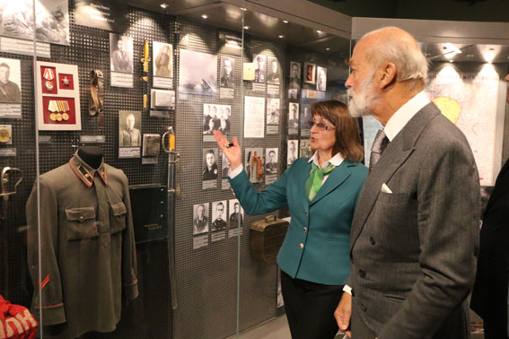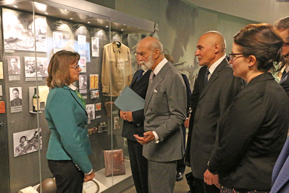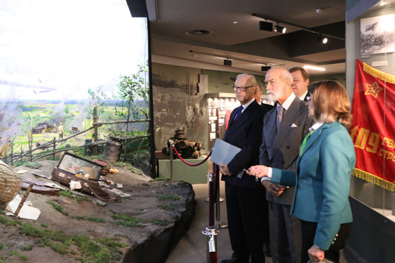 С экспозицией музея Принца Майкла Кентского ознакомила заведующий отделом истории партизанского движения Наталья Анатольевна Яцкевич. В ходе экскурсии Его Королевское Высочество ознакомился также с совместным проектом музея и Посольства Республики Польша – выставкой «Беларусы ў II Польскім корпусе. Невядомыя старонкі Другой сусветнай вайны».