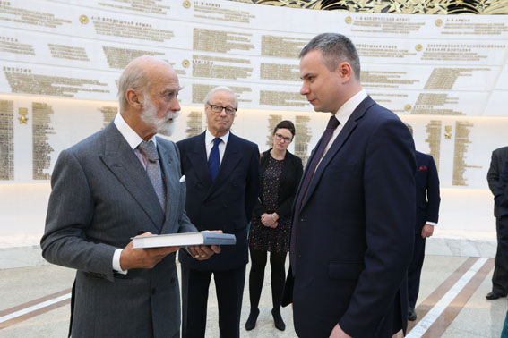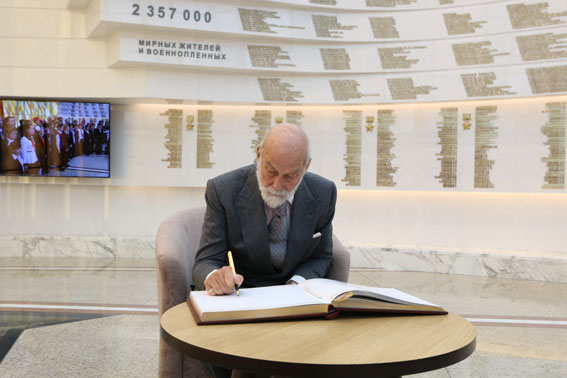Директор Белорусского государственного музея истории Великой Отечественной войны Дмитрий Геннадьевич Шляхтин в Зале Победы вручил члену британской королевской семьи Принцу Майклу Кентскому памятный сувенир. Его Королевское Высочество Принц Майкл Кентский оставил запись в Книге почетных гостей музея.