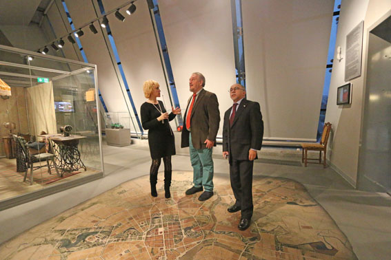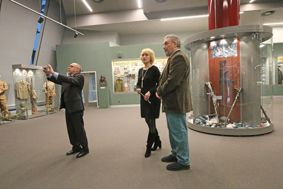 С экспозицией музея кубинских гостей ознакомила главный хранитель фондов Светлана Потупчик. С особым интересом Фидель Кастро Диас Баларт познакомился с музейным экспонатом – кожаным портфелем, подаренным его отцом, Первым секретарём ЦК Компартии Кубы Ф. Кастро Петру Мироновичу Машерову в 1978 году. Он рассказал сотрудникам музея, что до сих пор помнит, как с отцом Фиделем Кастро, находясь много лет назад в Минске, посещал музей истории Великой Отечественной войны, расположенный в то время в старом здании.