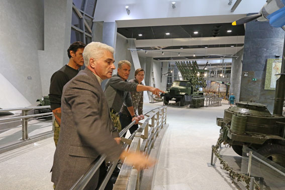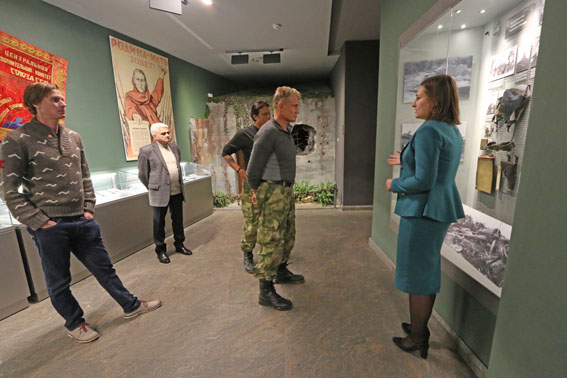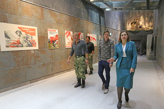 Известного зарубежного киноартиста в ходе экскурсии по музею сопровождали: заместитель директора Белорусского государственного музея истории Великой Отечественной войны Юрий Николаевич Цыкал и бывший начальник государственного учреждения «Военное информационное агентство Вооруженных Сил Республики Беларусь "ВАЯР"» полковник запаса Андрей Юрьевич Шубадеров.