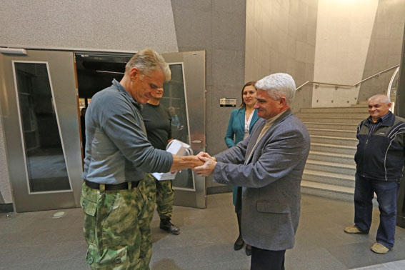 Сотрудники музея сфотографировались с известным американским актером, взяли у него автограф и вручили памятный сувенир.