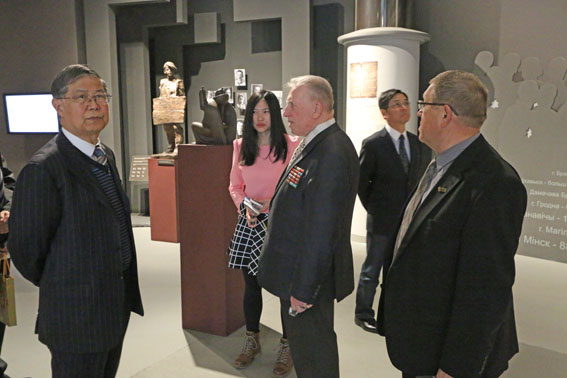 Обзорную экскурсию по залам музея с членами делегации провел участник боевых действий в Афганистане, полковник в отставке Владимир Фалецкий. Члены делегации ознакомились с участием китайских граждан в антифашистской борьбе с фашистскими захватчиками на территории Беларуси в годы Великой Отечественной войны.