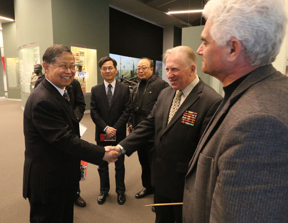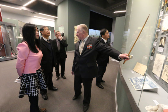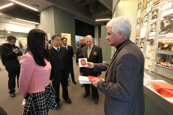 Заместитель директора музея Юрий Цыкал вручил членам делегации КНР буклеты «Белорусский государственный музей истории Великой Отечественной войны» на китайском языке, а также DVD-диск посещения музея Председателем Китайской Народной Республики Си Цзиньпином во время его официального визита в Республику Беларусь в мае 2015 г.