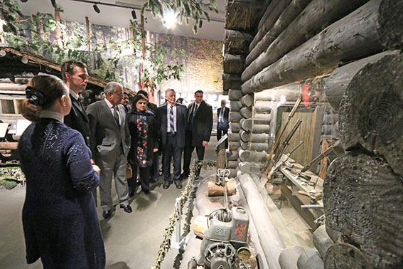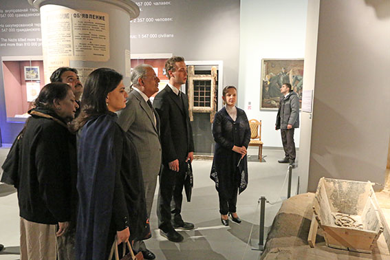 С Высоким Гостем, его супругой и членами официальной делегации на экскурсии в музее находились также: Чрезвычайный и Полномочный Посол Исламской Республики Пакистан в Республике Беларусь Масуд Хан Раджи и Председатель Постоянной комиссии Совета Республики Национального собрания Республики Беларусь по международным делам и национальной безопасности Рахманов Сергей Кимович.