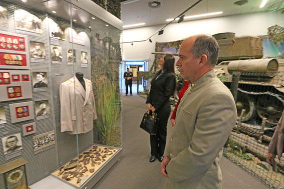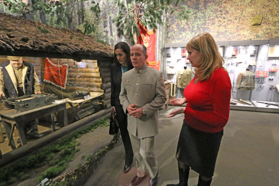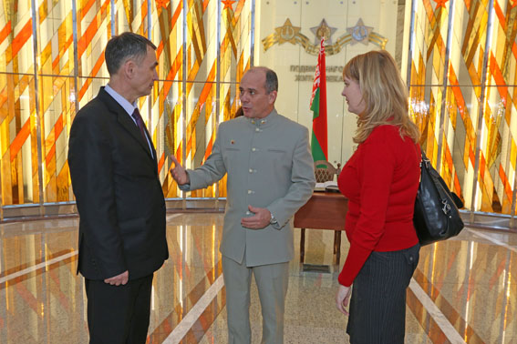 В ходе экскурсии, которую провела ведущий научный сотрудник Лариса Каткова, господин Посол высоко оценил значение музея в воспитании граждан Беларуси, и прежде всего молодежи, в духе преданности героическим традициям отцов и дедов.