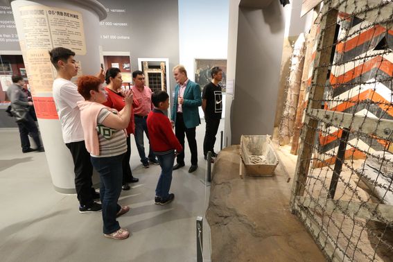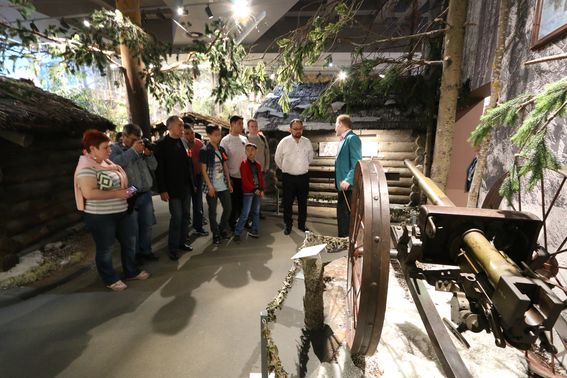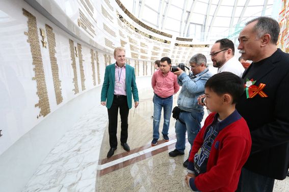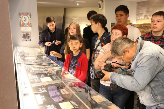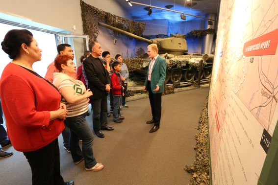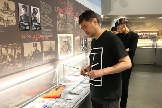 Обзорную экскурсию по залам музея провел научный сотрудник музея Андрей Малец. В Зале Победы золотыми буквами навечно выбиты имена верных сынов кыргызского народа – Героев Советского Союза Джумаша Асаналиева и Османа Якубова.