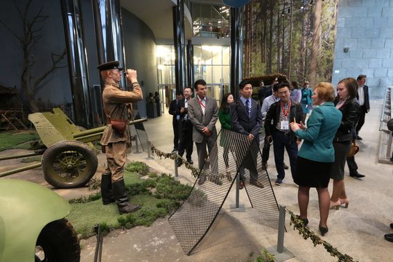 В Зале Победы гости из Поднебесной сфотографировались на память. Им вручены рекламные буклеты о музее на китайском языке.