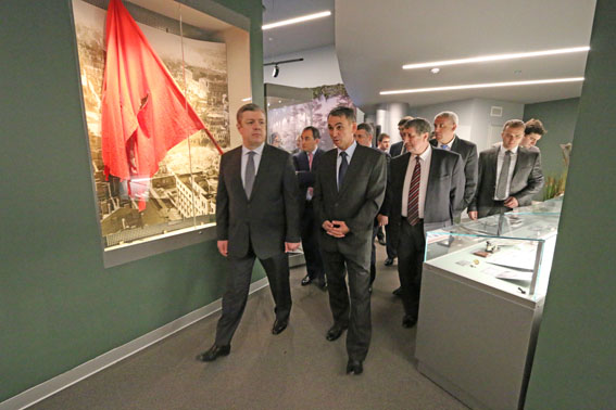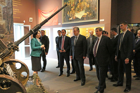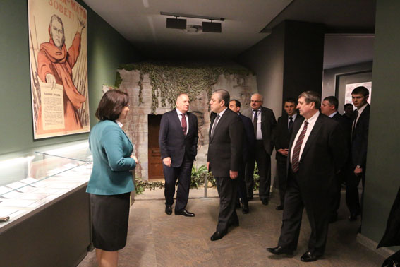 Экскурсию по залам музея провела научный сотрудник Татьяна Тройнель. Во время ознакомления с экспозицией внимание членов делегации было привлечено к газете «Правда», в которой опубликована речь Верховного Главнокомандующего И.В. Сталина от 3 июля 1941 г., а также плакату грузина Ираклия Тоидзе «Родина-мать зовет!».
