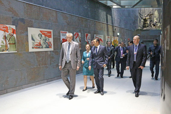 В Зале Победы, где размещены имена героев-таджиков, Премьер-министр Республики Таджикистан Кохир Расулзода оставил запись в Книге почетных гостей музея.