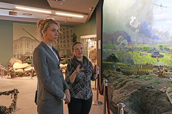 17 мая 2017 г. Белорусский государственный музей истории Великой Отечественной войны посетила Наталья Сергеевна Ищенко – временно исполняющий обязанности заместителя Председателя Правительства Калининградской области. Она находится в составе делегации «Поезда памяти», прибывшего из Калининграда в Минск для участия в совместных героико-патриотических мероприятиях. На митинге у стелы «Минск – город-герой» Наталья Сергеевна зачитала приветствие губернатора области и вручила председателю Минского Совета депутатов Василию Васильевичу Панасюку памятный знак.
