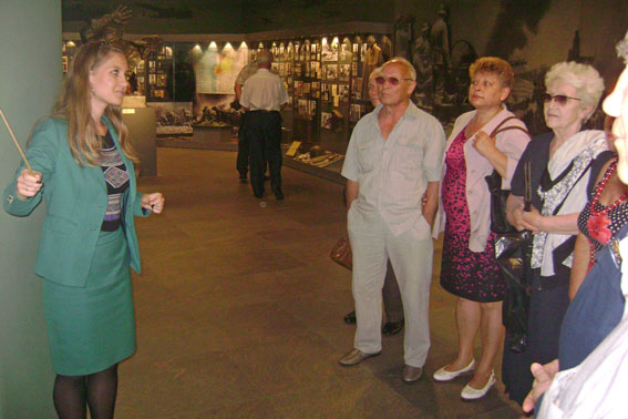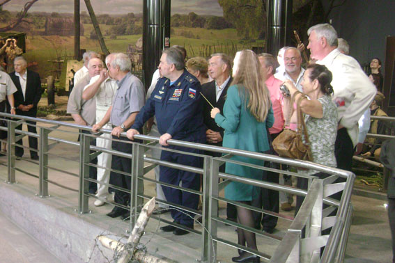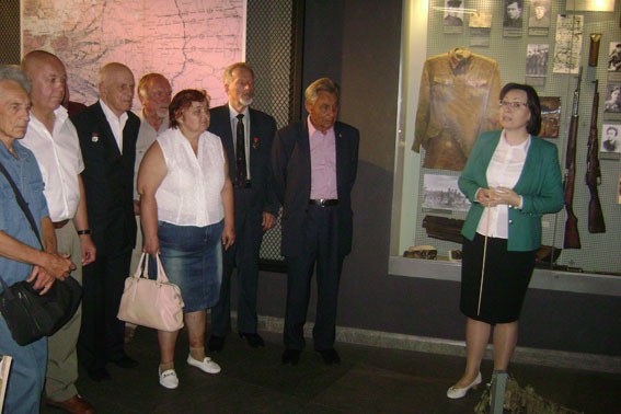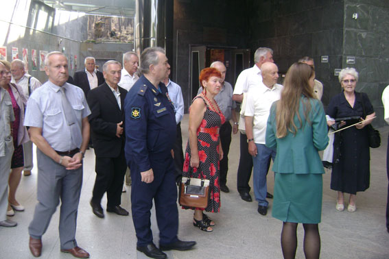 Научные сотрудники музея с гордостью рассказали ветеранам о том, как 6 июля 1943 г. вступил в бой с двадцатью вражескими бомбардировщиками белорусский летчик А.К. Горовец, сбил 9 из них и погиб в этом бою. Посмертно Александру Константиновичу было присвоено звание Героя Советского Союза. Он является единственным в мире летчиком, совершившим такой подвиг.