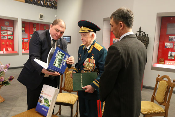 Директор музея Н.В. Скобелев подарил Вадиму Владимировичу Потомскому научно-популярное издание «Белорусский государственный музей истории Великой Отечественной войны».