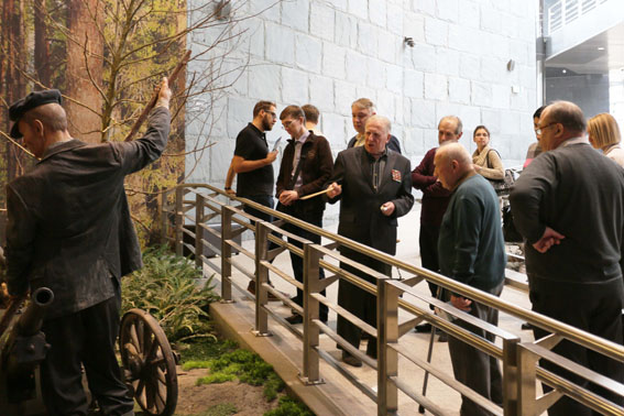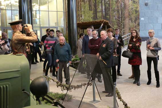 Обзорную экскурсию по залам музея с журналистами провел заведующий сектором научно-методической работы Владимир Фалецкий. В ходе экскурсии состоялась дружеская встреча Владимира Поликарповича с обозревателем агентства «Минск-Новости» подполковником запаса Александром Ерошенко. Александр Павлович в далекие 80-е годы служил в Афганистане редактором дивизионной газеты 5-й гвардейской мотострелковой дивизии, политотдел которой возглавлял гвардии полковник В.П. Фалецкий.