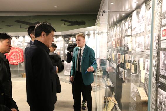 В ходе экскурсии китайских гостей заинтересовал раздел экспозиции, посвященный победе над милитаристской Японией, где собраны документы того периода, в том числе фотографии: подписание Акта о безоговорочной капитуляции Японии на борту американского линкора «Миссури» 2 сентября 1945 г. и Акт о капитуляции японских вооруженных сил 9 сентября 1945 г.