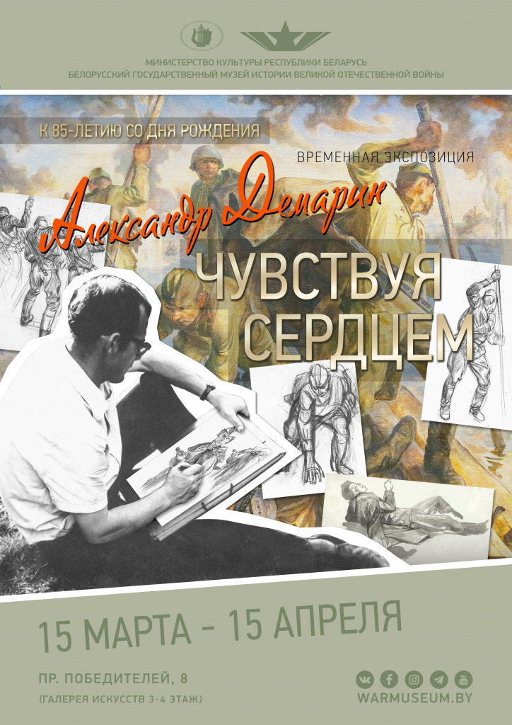 15 марта 2023 года в 15.00 в Белорусском государственном музее истории Великой Отечественной войны состоится торжественное открытие выставочного проекта «Александр Демарин. Чувствуя сердцем», приуроченного к 85-летию со дня рождения художника.