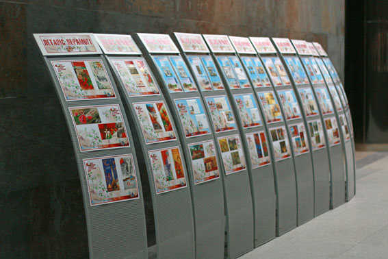 На выставке представлены коллекции марок, маркировочных конвертов, карточек, открыток, посвященных Великой Победе.