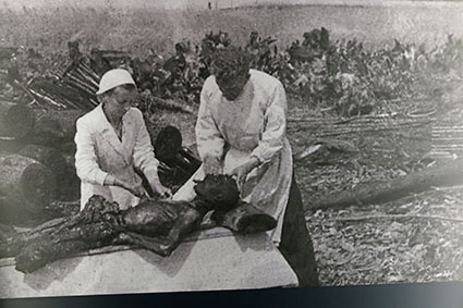 Созданию временной экспозиции предшествовала серьезная научно-исследовательская работа: тщательно изучались и анализировались материалы архивов и музеев, литература и публикации по этой теме. С осени 2014 г. над созданием сценария экспозиции вели работу члены Международного попечительского совета, в состав которого входили историки и музееведы Беларуси и Германии. В их числе – сотрудники Белорусского государственного музея истории Великой Отечественной войны: заместитель директора по научной работе Анна Васильевна Галинская и заведующий отделом истории партизанского движения Наталья Анатольевна Яцкевич.