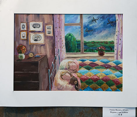 I место заняла работа «Первое утро войны», автор Ушак Вадим (13 лет), он награжден дипломом 1-й степени.